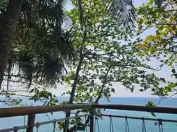 If you come to Phuket and don't stop by, you're missing out! This cafe is called "Suea Puan Mon Bai". Let me tell you, the atmosphere is amazing. The sea view is worth millions, but the price is very cheap. The cafe is located on a hill, next to the sea, very close to nature. The seats are in steps, gradually going down to the wooden swing by the sea. The photo spot is so cool!