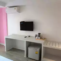 Atmosphere and location - This is another hotel that I would like to recommend in Phuket Town, close to shopping areas, tourist attractions, and the old town of Phuket. In front of the hotel, there is a parking lot for about 10-12 cars. In front of the hotel, there is a small swimming pool for guests. The reception is decorated with warm light and the hotel logo is a neon light. The hotel does not have breakfast, but there are coffee, tea, and snacks available. Guaranteed from 7 am to noon. There is also a sitting area.