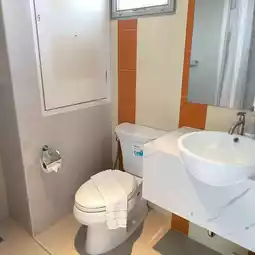 There is a balcony, but the hotel does not allow smoking and bringing durian into the bathroom. The bathroom is a good size, has a water heater, and free WiFi.