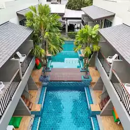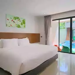 Let me introduce you to a Phuket accommodation with a chill and relaxing atmosphere that is perfect for a relaxing vacation. The highlight of this place is the pool access style rooms where you can just open the door and go swimming in the pool. Even if you stay on the 2nd floor, each room has its own private stairs to easily walk down to the pool. The pool is also very wide, so you can swim to your heart's content.