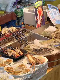 Of course, as a foodie, my main focus is always on the food! Naka Night Market boasts an overwhelming selection of delicious treats, including Thai street food, barbecue, and seafood. Every bite is a burst of happiness!