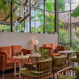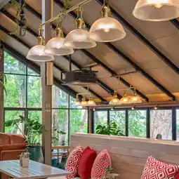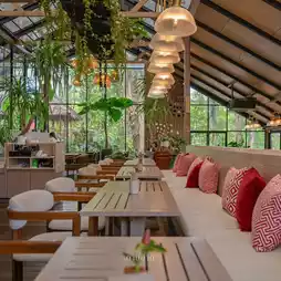 Who would have thought that behind 𝗧𝗵𝗿𝗲𝗲 𝗠𝗼𝗻𝗸𝗲𝘆𝘀, there would actually be a glasshouse cafe hidden in the middle of the forest? 🍃 𝗕𝗮𝗯𝗼𝗼𝗻 𝗣𝗵𝘂𝗸𝗲𝘁 gives a treehouse feel in the middle of a large forest, surrounded by tall, green trees. Beautiful, clean design, lots of photo spots. 🌿