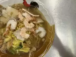 👭✨ Ao Ke Shrimp Noodles: Soft noodles, fragrant shrimp soup, and lots of ingredients.