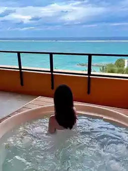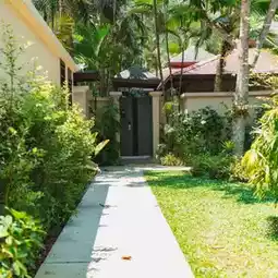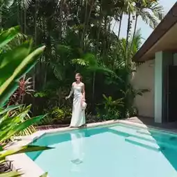 The atmosphere outside has a communal pool for swimming or for those who like to sunbathe, you can bring a drink from the pool bar cocktail🍸 and enjoy it. There are trees surrounding it to provide freshness and create a peaceful atmosphere, perfect for another type of relaxation. As for May, she couldn't help but find this atmosphere. Here, they have a massage service called 𝙇𝙞𝙢𝙚 𝙇𝙚𝙖𝙛 𝙎𝙥𝙖. I had a massage and fell asleep. The massage was very good.