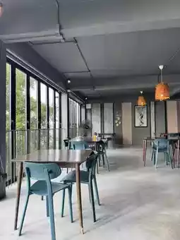A very minimalist hotel. You may have seen it a lot on social media. It's a pity that we didn't get a room on the upper floor. Even though we requested it, we understand that we might not be able to choose. We went during the monsoon season, so the atmosphere wasn't good. But the view was already beautiful. The breakfast was delicious. There wasn't much, but it was delicious.