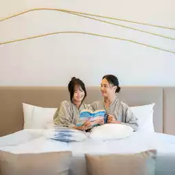 #Room This time we stayed in a Deluxe Plus room with Outdoor Bathtub. The room was spacious. The big bed was soft and comfortable. The balcony overlooked the swimming pool. There was a Jacuzzi for soaking. There were complete amenities, including a TV, refrigerator, and slippers.