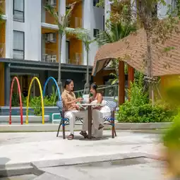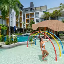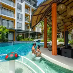 #The highlight of this place is the swimming pool in the center of the resort. There are 2 swimming pools. There is a small water park for kids to have fun. For teenagers like us, there is a pool bar that serves drinks and food. It is also beautiful. It is another cool photo spot.