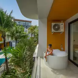 Here is another beautiful new resort in Phuket. This one is only 20 minutes from the airport and just across the street from Nai Thon Beach. This time we came to relax here for 3 days and 2 nights. There are many places to visit around the area. It is also very convenient because there are many shops and restaurants near the resort.
