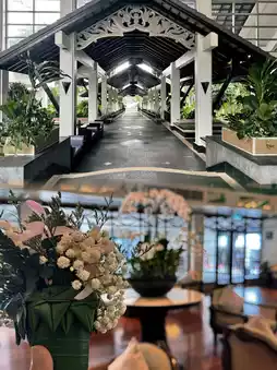 🌟Highlights: The lobby of Dusit Thani Laguna Phuket features a Thai neoclassical design style, with high ceilings, wooden beams, and intricate latticework. Combined with soft lighting and exquisite sculptures, it creates an elegant and pleasant ambiance. The spacious reception area is adorned with retro wooden furniture and tropical decorations like orchids, offering a warm yet luxurious welcome experience. Multiple public seating areas allow guests to enjoy drinks while admiring the garden views, providing relaxation at any time.
