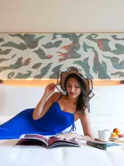 Just 15 minutes from Phuket Airport, this resort is located on a private beach that stretches over 500 meters, giving a sense of peace like being in another world. It stands out with its mid-century style decoration, combining natural patterns such as palm leaves, white, cream, and light yellow tones, giving a sense of simplicity, softness, and warmth.