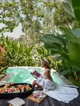 There are over 200 rooms in total, divided into several types, from Deluxe, Pool Access, to Private Pool Suite rooms with a wide balcony for relaxing and enjoying the garden view or the sound of the waves from the sea. Every room is meticulously decorated, has a spacious living area, and is fully equipped with facilities.