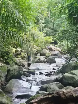 The waterfall is easy to access, with a long stream and many rocks. You can swim in many spots. The highlight is about 500-600 meters up.