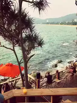 Located on a hill by the sea between Karon and Kata beaches, this open-air bar features multiple levels connected by staircases and terraces on both sides. It's a popular spot for taking photos. Opening hours: Open daily from 10:00 AM. Sunday–Thursday, it closes around midnight, while Friday–Saturday it stays open until 2:00 AM. The menu focuses on cocktails (starting at ~200 THB) and offers international and Thai cuisine, with prices starting at approximately 150 THB.