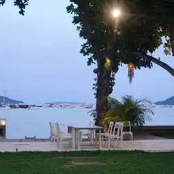 The shop is located on the shores of Chalong Bay. There are both indoor and outdoor seating areas with sea breezes. The atmosphere is shady with large trees. There is a wide, airy area, convenient for families or groups of friends. There is convenient parking. There is live music in some evenings.