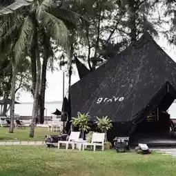 🧋🍰 And there is also a Beach Glamping style cafe inside the accommodation, Grove Phuket. Eat food, snacks, drinks, chill out with the atmosphere by the sea. Let me tell you that the sunset in front of the accommodation is very beautiful.