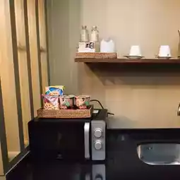 You and Tai stayed in the Studio Villa Ocean with Jacuzzi. The villa room has a sea view with a Jacuzzi on the balcony outside. The room is spacious, divided into separate zones, has a small kitchen, can adjust the lights to be dim, suitable for relaxation. If you come with a lover, the atmosphere is super romantic. The bed is soft, the pillows are soft, and you will sleep so well that you won't want to get out of bed.