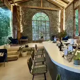 A chic cafe hidden in a Caltex gas station in Thalang. The atmosphere is comfortable, airy, and spacious. There is a big tree in the middle of the shop. There are plenty of photo spots. The cafe is divided into two floors. Decorated in a vintage-modern style, using lots of glass, natural light shines through, making it feel very airy and comfortable. Especially in the middle of the shop, there is a big tree, which adds a pleasant green mood. ๐