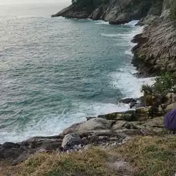 Laem Krating is a natural viewpoint hidden by the sea in Phuket. 🌊 You have to walk through the forest a bit, but when you reach your destination, it's amazing! The sea view as far as the eye can see, the sound of waves gently hitting the rocks, and the cool breeze blowing all the time. 🌬️ 180-degree viewpoint, perfect for sitting quietly and taking a deep breath of fresh air. 🍃