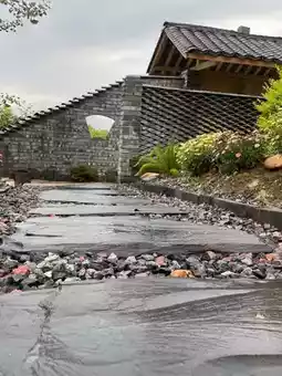 The outdoor area has many photo spots! Both swings, wooden sofas, stone tables, looking ahead = sea