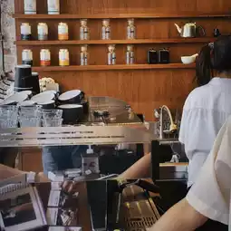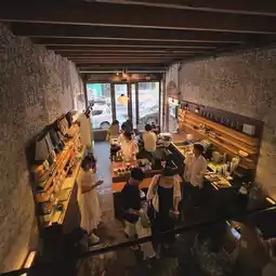 Exposed concrete walls, wooden spiral staircase, high ceiling, and just the right amount of natural light shining down the middle. The whole shop is full of photo spots without having to look for them 📸