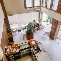 MATA, a cafe with a great vibe, decorated in a Korean style, with a minimalist and mini heart, focusing on white and brown tones. The shop is made of glass all around, with good lighting, giving a sense of openness and spaciousness. The warm atmosphere is perfect for sitting and sipping coffee, eating snacks, or choosing clothes. This place also provides services.