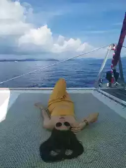 If anyone is looking for a luxurious but easy-to-access chill trip in Phuket, I recommend a catamaran cruise to Koh Maiton! This trip was impressive from the moment I stepped on the boat because the boat was beautifully designed, spacious, and had both indoor and outdoor seating areas. Whether it was the bow, the deck, or the stern, every shot was perfect, like it was in a travel magazine.