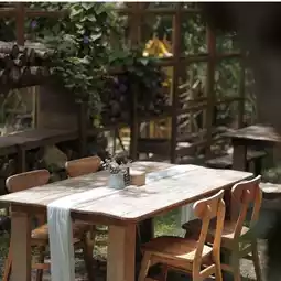 The shop is decorated in a rustic style, mixed with warmth from bamboo and green trees.