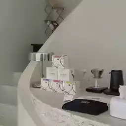 • There are 3 floors: the ground floor is a coffee bar, the second floor has a working area, and the third floor is sometimes open as a workshop.