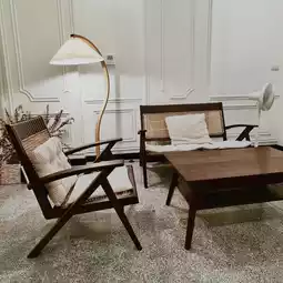 Decorated in soft white tones and light brown wood, the café exudes warmth and simplicity. There are seating options both indoors and in a small outdoor garden. The peaceful environment makes it ideal for working or relaxing.