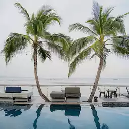 There is a swimming pool with a beautiful sea view. In the evening, it is very chill