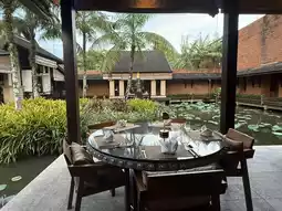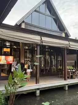 The atmosphere is very nice because the restaurant is open, with a view of the green garden and the pond. The gentle morning sun is the best feeling. Anyone who wakes up early and comes to sip hot coffee here will start the day feeling very refreshed. ☕🌿