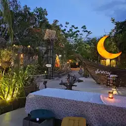 • The beachfront walkway is covered with lush greenery, leading to the long and quiet Mai Khao Beach, with beach chairs for lying down and enjoying the sea view.