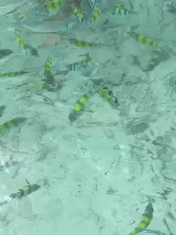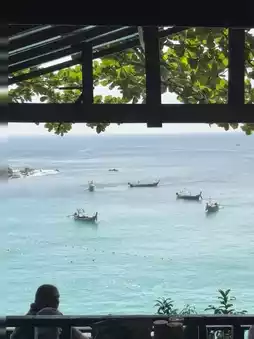 This beach boasts clear waters and white sand, offering a perfect spot for strolling and relaxing. There are plenty of water activities to choose from. Additionally, the island has restaurants serving a variety of dishes, including savory and sweet options, along with beverages.