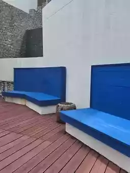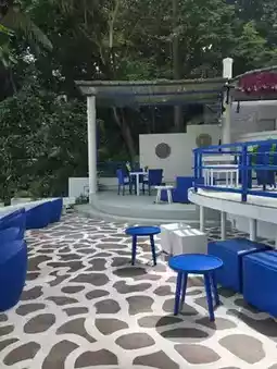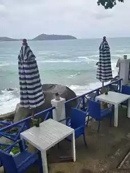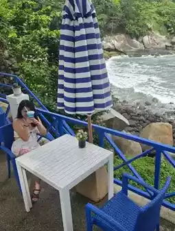 Atmosphere: A seaside cafe with a view of the sea on the Patong Beach side. The shop belongs to the Zenmaya Oceanfront Phuket Hotel, located inside the hotel. It is divided into private zones for hotel guests and cafe customers. The cafe zone is an outdoor area with large trees to block the sun. It is decorated with wooden furniture, large parasols, white and blue tones, and there is also a photo corner provided by the shop.