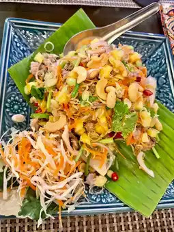 Wow, I'm impressed with this dish. The crab curry is incredibly rich, and they don't skimp on the crab at all. 🧡 The crab meat is dense and chunky, with no flour added. The flavor is a little spicy, true to Phuket style. Served with thin, chewy noodles, this dish is the best! 💯🔥