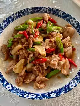 🐟 The “Kua Kling Moo” is another fiery delight, packing a punch of heat and bold flavors 💥. This dish is a must-try for spice lovers, offering a fiery yet satisfying experience 😋.