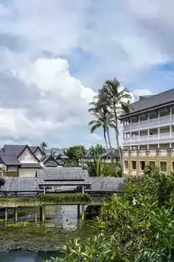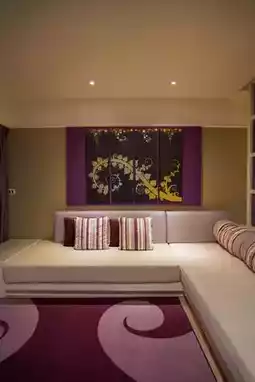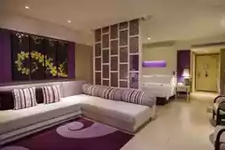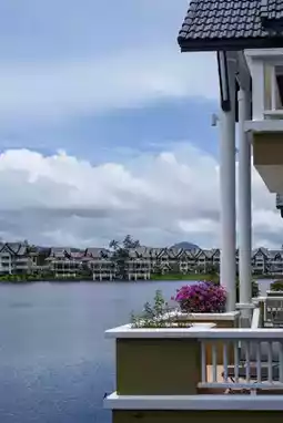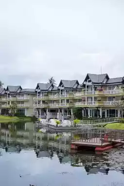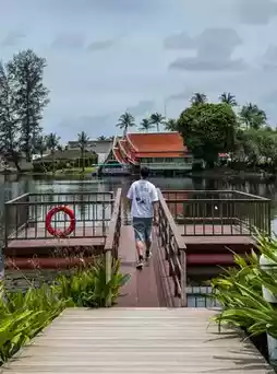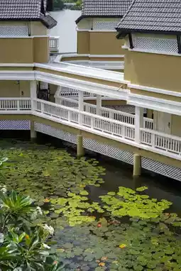 The hotel buildings stretch from the lobby along the lakeside, offering numerous room types. Most spacious suites and villas provide stunning views of the lagoon or ocean. I stayed in a Deluxe King Room starting at 45 square meters, cleverly designed with a screen divider to create an open mini-suite feel. The room's purple-dominated Thai-style decor exudes local charm.