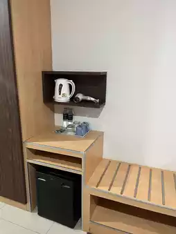 The room was clean and well-equipped. While not luxurious, it was well-equipped. The bed was soft and comfortable. The air conditioning was cool. The bathroom was good, the water pressure was strong, and a hair dryer was provided.