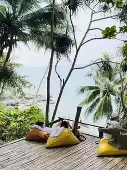 In the afternoon, stop by for a cup of coffee at a secret cafe by the sea, Mat Phuean Moan Bai, a cafe with a homey but very cute atmosphere. The view is good, the wind is good, and the coffee is good.