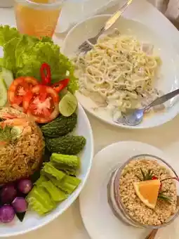 ➡️ Coming Home Cafe & Seascape 🧋🏖The atmosphere here is very good. It is both a cafe and a restaurant. 🍴We can sit both inside and outside the shop with a view of Rawai Beach. There are many food, bakery, and drinks to choose from. And each dish is served in a very large plate. No matter how many times you come, you will not be disappointed. 🛶🌊🌴
