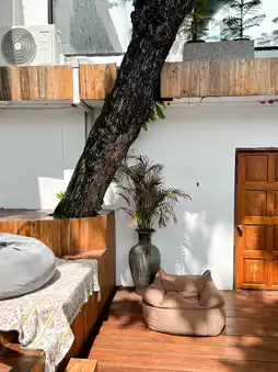 The Commune Phuket is a stylish and relaxed café located in the heart of Phuket Old Town. Housed in a historic building, the minimalist interior and warm colors create a comfortable and cozy atmosphere. The spacious and airy interior is accented with plants and wooden furniture, adding a natural, modern touch.