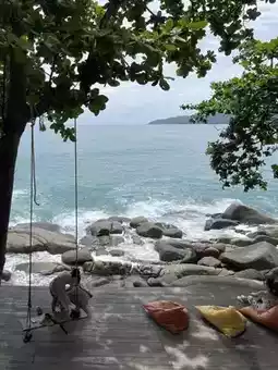 #TravelChat I'd like to recommend this cafe to anyone visiting Phuket who's looking for a must-visit. "Mae Fuen Mon Bai" is a cafe with a menu that costs a few hundred baht, but offers a million-dollar view to enjoy. 🌊