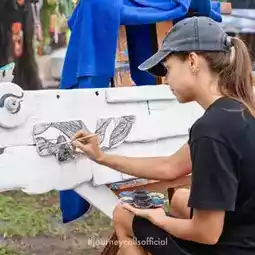 The atmosphere was super chill! 🌿 Cool art! 🎨 Food, coffee, and live music were all there! P'Jeans had so much fun walking around, we didn't want to leave! 🧃🛹