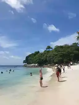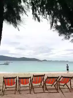 At Racha Island, the sunbeds in the center of the beach are paid, but the shaded area near the black rocks by the bridge from the boat to the beach is close to the sea, so renting a sunbed may not be necessary. On Coral Island, there are plenty of free orange-striped sunbeds, but you can opt for paid ones if needed.