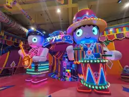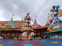 Carnival Magic Phuket, a carnival-themed light show, opens at 5:30 PM. I recommend going early because there are so many activities inside. The area is large and spacious, holding many records. The lights are spectacular. The staff are friendly and cheerful. There are performances in the theater. Cameras and phones are not allowed. The management is excellent. Seats are assigned. It's not crowded. The parade is fun and lively. The kids love it.