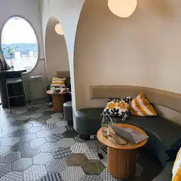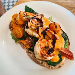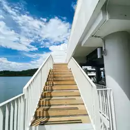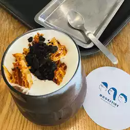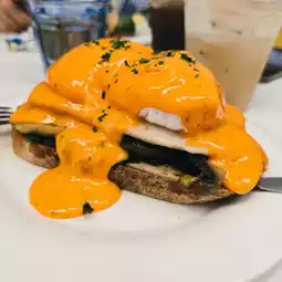 🧁 This was our first time at this pier and we were very impressed with its location. There's ample parking right next to the pier, and just a few steps down the stairs to this hidden waterfront cafe. Moonstone serves excellent coffee made from Chiang Mai beans. We ordered their special iced cappuccino with cheese foam, and it was absolutely delicious. Their breakfast is creative and unique. We ordered one served on sourdough bread, sauteed spinach, a piece of white fish, two poached eggs, and hollandaise sauce with red chili. It's a rich take on traditional Thai flavors. 😋👍🏻 We loved how they experimented with this dish. It was delicious, but we suggested the team reduce the amount of hollandaise sauce a bit. The runny yolks turned into little lakes of sauce with the eggs on the plate. Even with a slight adjustment, the taste was still amazing. We also tried the square croissant with ice cream. Both the croissants and ice cream are delicious.