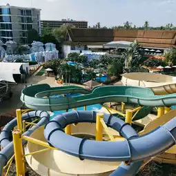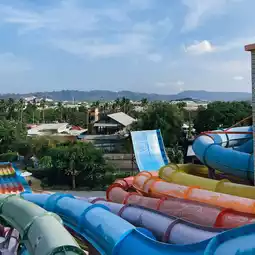 🎢 This theme park has a wide variety of family-friendly rides, and life jackets are provided for added safety. The prices are reasonable, making it a wonderful day. The staff are lovely, and the lifeguards are friendly and fun, but they're always on hand to ensure the park's safety. The water in most of the pools is clean. There was only one pool with sand and leaves, but we saw them cleaning it. 👏🏻👏🏻 Some of the slides could use a little maintenance, but we didn't feel unsafe. Honestly, if you're looking for top-quality water slides, you should go somewhere other than Thailand. We bought our tickets on 'trip.com' because they were almost half the price, and we had no problems at all upon arrival. We spent the entire day from opening to closing, which was more than enough. We happily returned from the park. All the slides are accessible if you're taller than 1.22 meters, and all but two are allowed to go if you're taller than 1.05 meters. 😇 This is a very family-friendly place, with a lot of slides and pools. The lines were a bit long when we went. The only downside is that food and drinks (not even water) are not allowed. Towels are not allowed, as we wanted to rent towels and buy food and drinks at the shop. As expected, the food and drinks were overpriced.