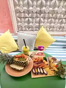 Then you can enter the Reception into the Café to dine, but too many people waited for about 20 minutes that day. The guests are all foreigners and the dining is spacious, allowing you to enjoy the view of the lotus pond while dining. We sat on the upper floor, the wall background is very beautiful with Moroccan feel, it can be seen that the tourists enjoy the atmosphere very much, the ladies dressed up 💃.