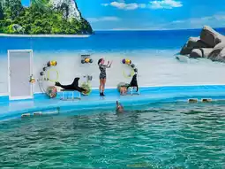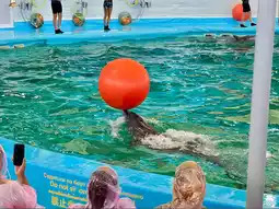• Show: Dolphins and sea lions perform shows such as jumping through hoops, playing with balls, drawing, dancing to music, and talent shows.