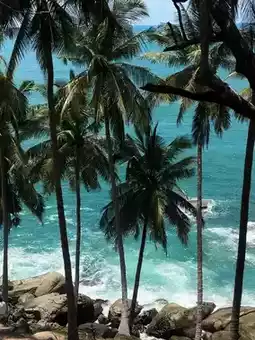 If you visit in the evening, around 5:00 PM to 6:30 PM, you can witness the sun setting over the horizon, with shadows cast on the rocks, the sea, and the coconut trees. The ambiance is perfect for photography or simply relaxing.